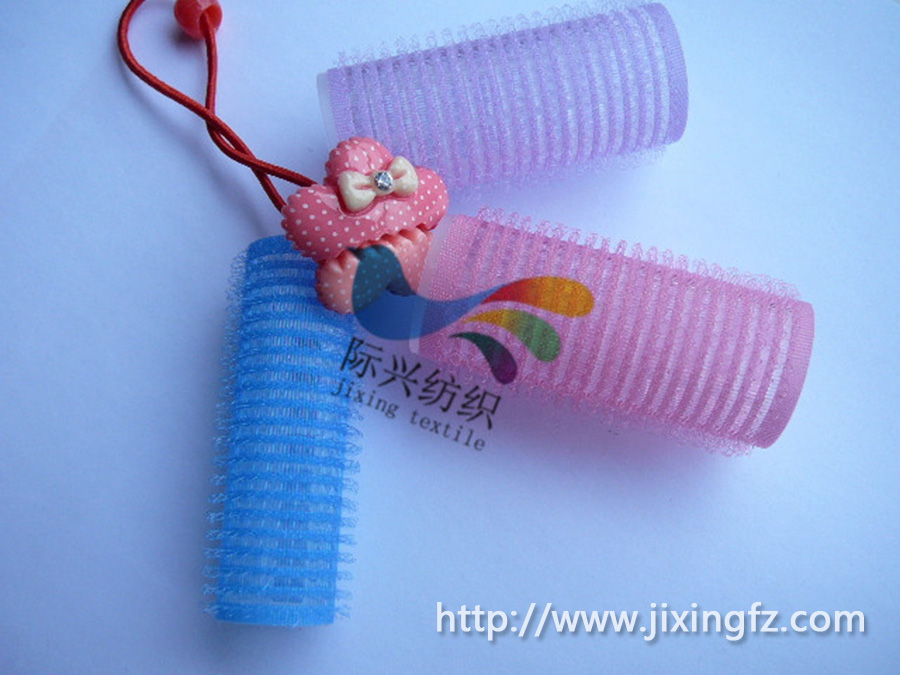 发卷带魔术贴 ,美发贴,刘海贴:特殊编织,切勾咬合卷曲强,外观秀气,钩子较细不粘发,易于从头发上拿下来,带子底部亦透气。